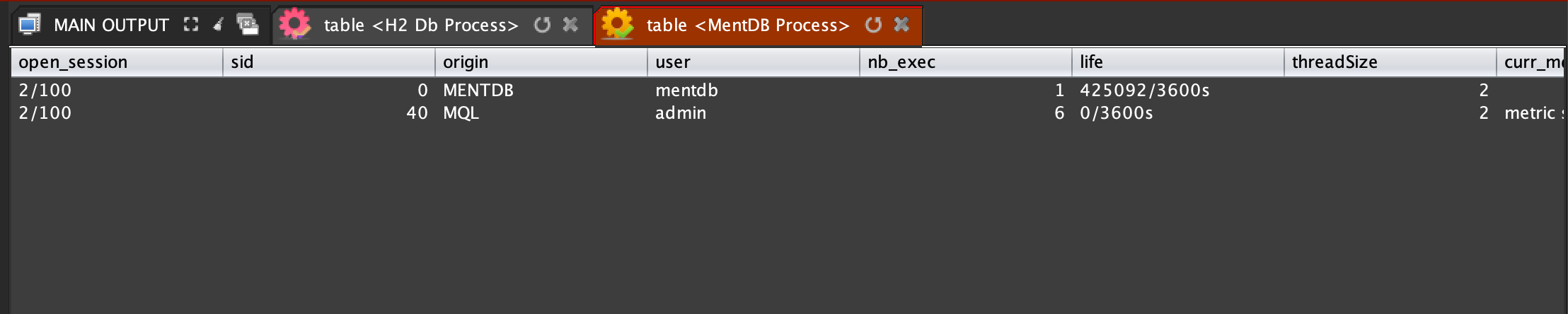 To show current MentDB sessions, click on