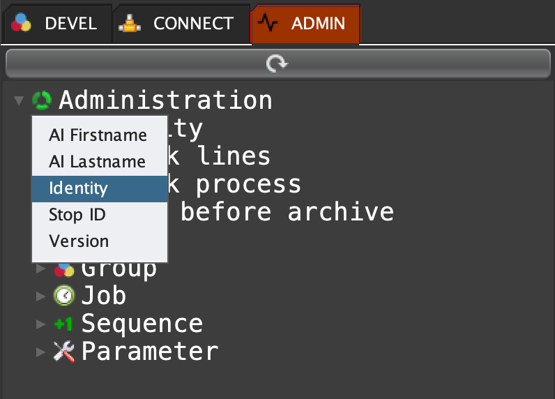 On the ADMIN tab, right click on 'Administration' and select 'Identity' ...