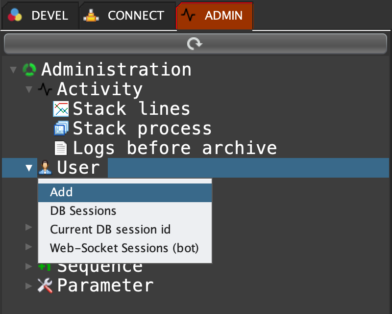 Click on the ADMIN tab, right click on 'User' and select 'Add' ...