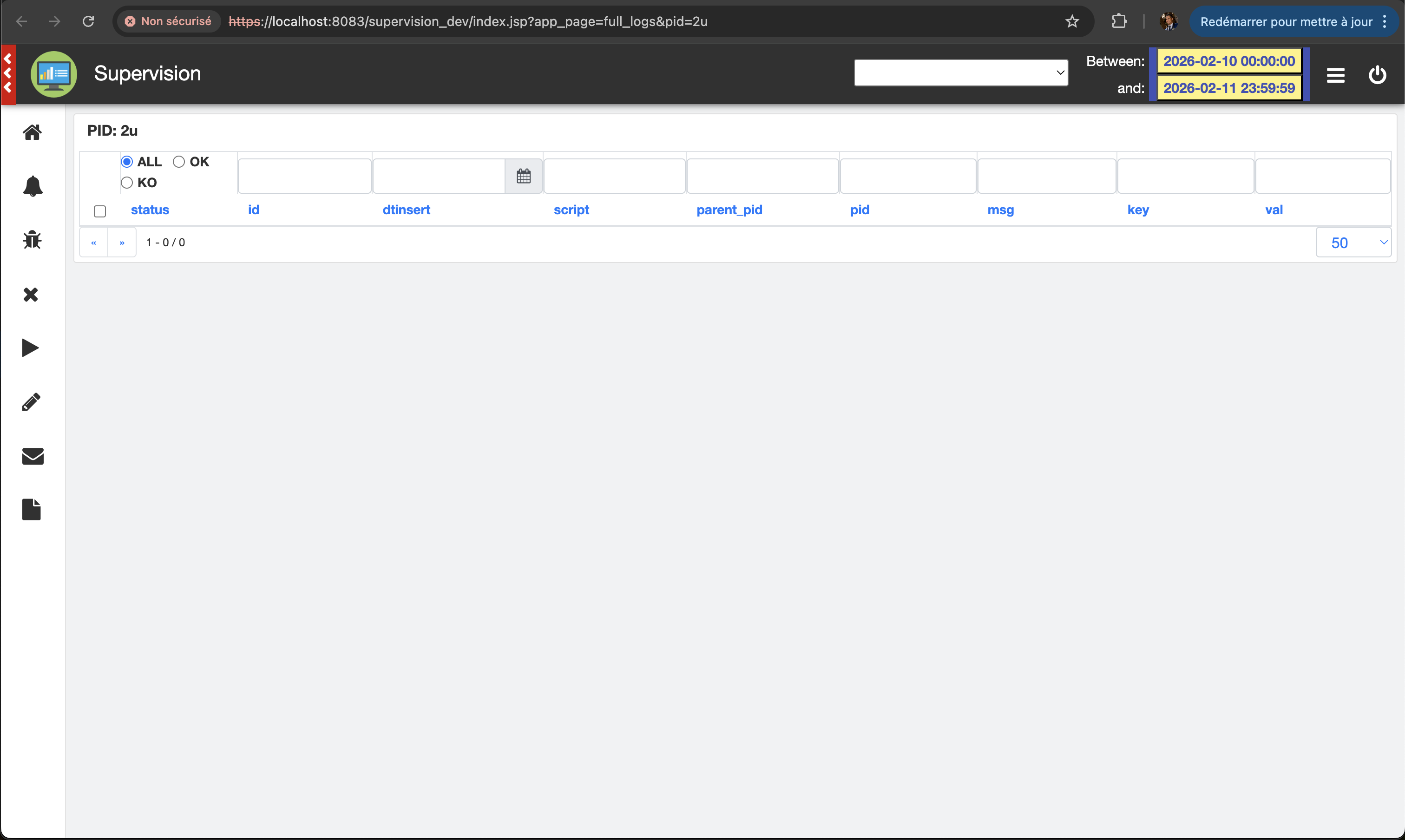 Connect to the application: https://localhost:8083/supervision_dev, and open the waiting (or in execution) process page (menu on the left)